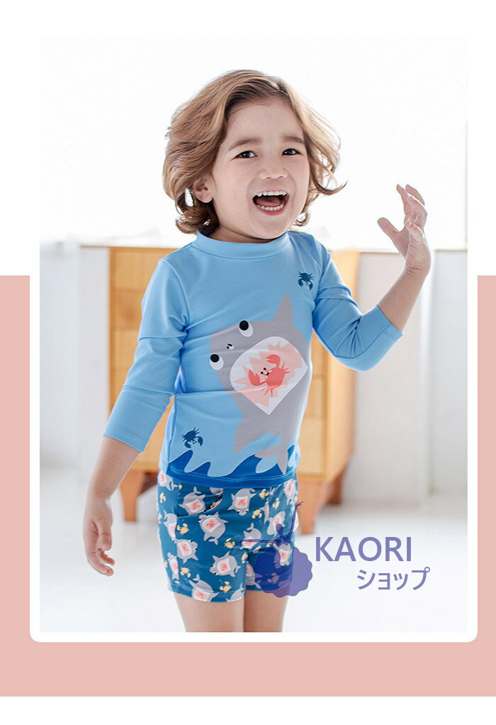 【送料無料】可愛い サメ柄 水着 子供 男の子 ベビー 水着 ベビースイミング キッズ 男の子 半袖 上下セット スクール水着 ベビー ラッシュガード 子供 水着 男の子 セット 90 100 110 120 130 紫外線防止 UVカット水着