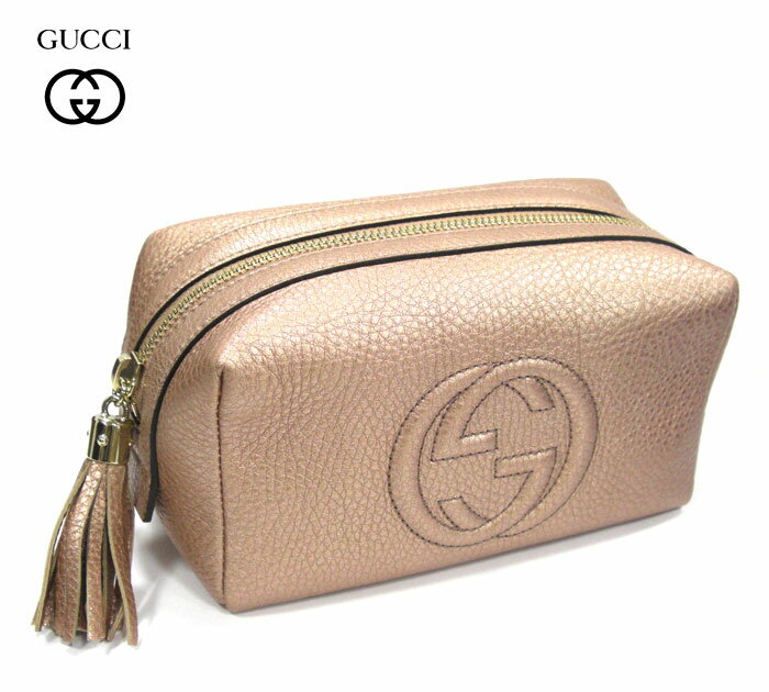 【GUCCI】グッチ エンス インターロッキング メディオソーホー ポーチ メタリックピンク レザー ダブルGロゴ GGロゴステッチ コスメ 化粧 小物入れ フリンジチャーム 308636 RA4910【中古】