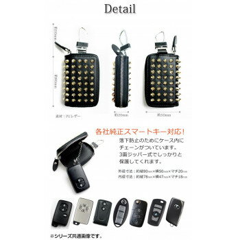 スタッズが散りばめられた高級感溢れるキーケースが登場!スタイリッシュなデザインのカラビナは、不要な場合は取り外し可能です。